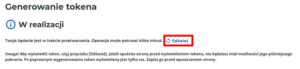 3. Pojawi się komunikat, iż operacja jest w realizacji. Możesz wybrać przycisk „Odśwież”, aby sprawdzić, czy token został wygenerowany.