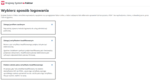 Uwierzytelnienia możesz dokonać za pomocą profilu zaufanego, certyfikatu kwalifikowanego lub odcisku palca certyfikatu kwalifikowanego.