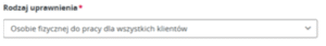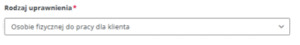 W sekcji „Rodzaj uprawnienia” z listy rozwijanej wybierz opcję „Osobie fizycznej do pracy dla klienta”.