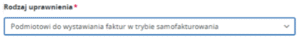 W sekcji „Rodzaj uprawnienia” z listy rozwijanej wybierz opcję „Podmiotowi do wystawiania faktur w trybie samofakturowania”.