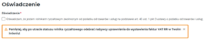 W sekcji „Oświadczenie” należy złożyć oświadczenie o posiadaniu statusu rolnika ryczałtowego zwolnionego od podatku VAT.