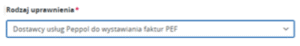 W sekcji „Rodzaj uprawnienia” z listy rozwijanej wybierz opcję „Dostawcy usług Peppol do wystawiania faktur PEF”.