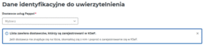 Rozwinie się dalsza część formularza, w której będzie należało uzupełnić dane identyfikacyjne do uwierzytelnienia. Z listy rozwijanej wybierz dostawcę usług Peppol.