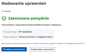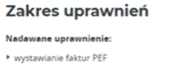 W kolejnej części wskazany jest zakres uprawnień „do wystawiania faktur PEF”. Kliknij „Nadaj uprawnienia”