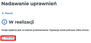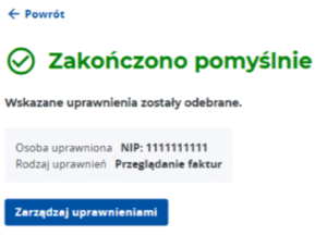 Po zakończeniu procesu system wyświetli informację o pomyślnym odebraniu uprawnień.