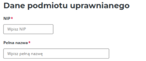 Rozwinie się dalsza część formularza, w której będzie należało uzupełnić dane podmiotu uprawnianego, takie jak: