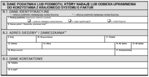 3. Sekcja B – dane podatnika lub podmiotu, który nadaje lub odbiera uprawnienia do korzystania z Krajowego Systemu e-Faktur