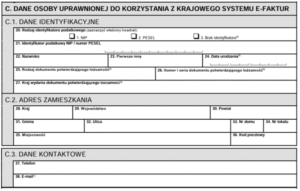 4. Sekcja C – dane osoby uprawnionej do korzystania z Krajowego Systemu e-Faktur.