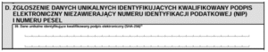 5. Sekcja D – dane unikalne powiązane z certyfikatem kwalifikowanego podpisu lub kwalifikowanej pieczęci elektronicznej niezawierających numeru identyfikacji podatkowej (NIP) i numeru PESEL.