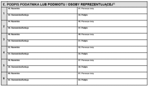 6. Sekcja E – podpis podatnika lub podmiotu / osoby reprezentującej